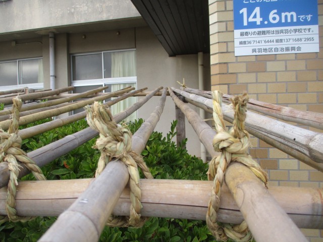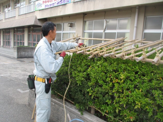 用務員が雪囲い作業を始めていました。今年の積雪量は如何ほどなのでしょう?