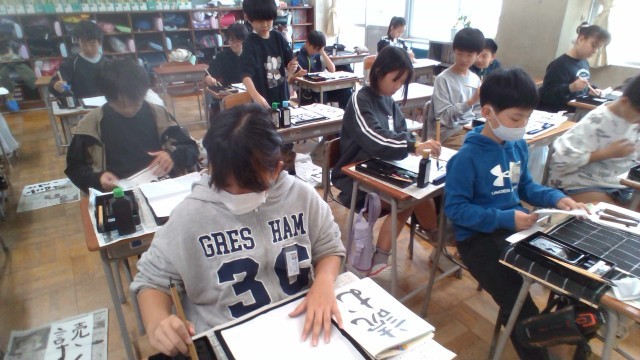 5年生 書写 文字の大きさを意識して書こう 公開日 2025/11/18 更新日 2025/11/18 5年生の活動 書写の時間には、文字の大きさを工夫して書く練習をしています。漢字を大きく、ひらがなを小さめに、読みやすいように書いています。今日は清書を一枚仕上げました。練習を積み重ねた結果が伝わってきます。