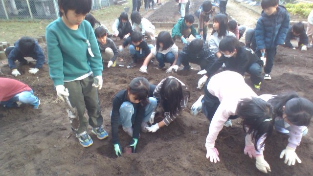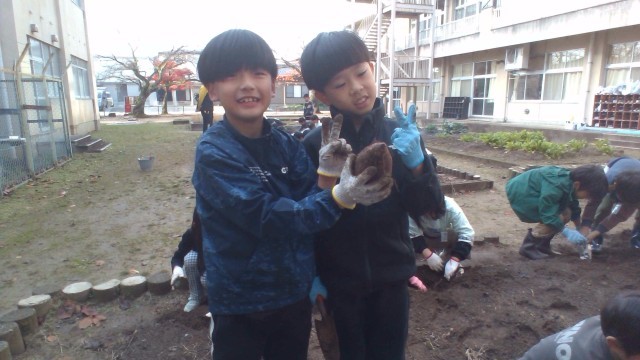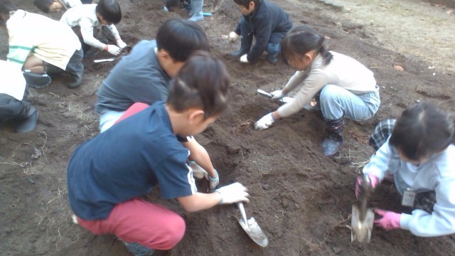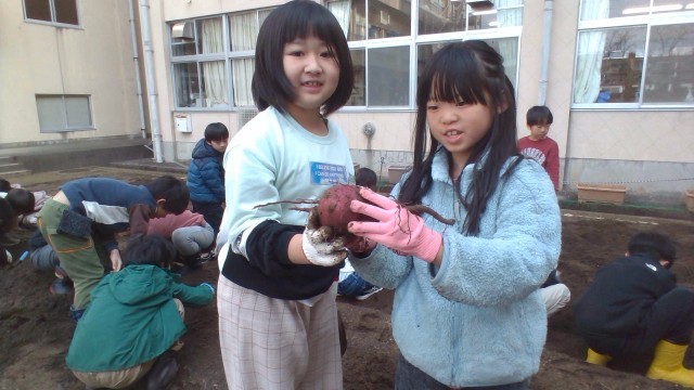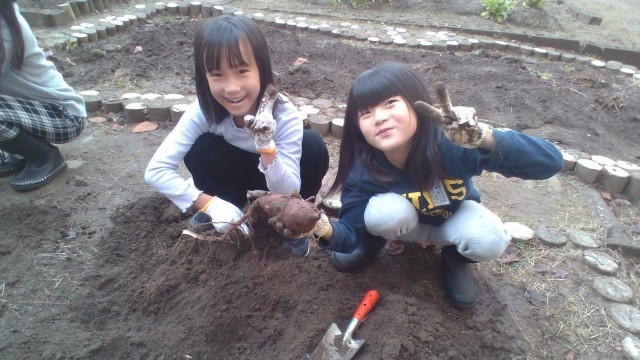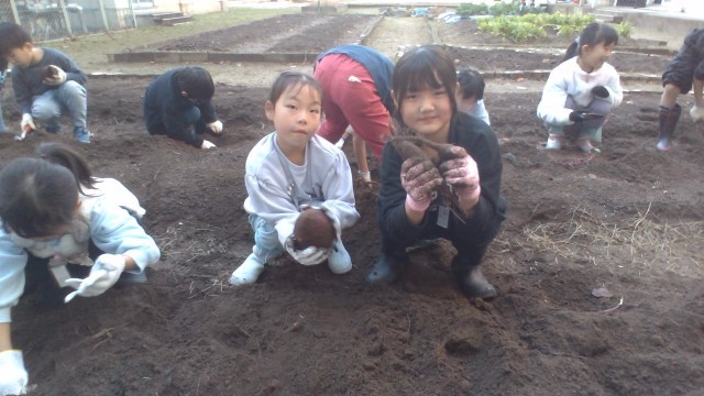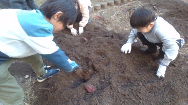 今日は子供たちが楽しみにしていたサツマイモほりでした。サツマイモを見つけると、傷を付けないように、慎重に掘り進める子供。友達と協力して、声を掛け合って掘り進める子供。サツマイモを収穫することができたとき、一緒に喜ぶ子供。とてもよい時間となりました。