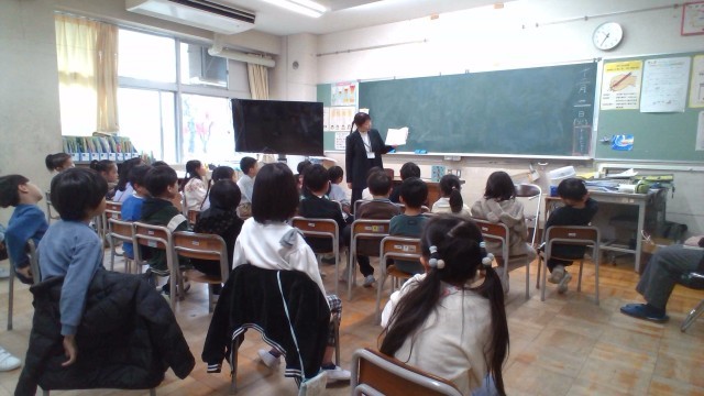 今日は、富山市立図書館呉羽分館の方々が読み聞かせに来てくださいました。最初に、本を見ずに、覚えた物語を口頭で語る方法である素話をしてくださいました。子供たちは、耳を傾けて、想像しながら話を聞いていました。そのあと、1組は「家」2組は「山」3組は「穴」がキーワードの絵本や本を読んでくださいました。さらに本が好きになった子供たちでした。また、お家でどんな話だったか聞いてみてください。