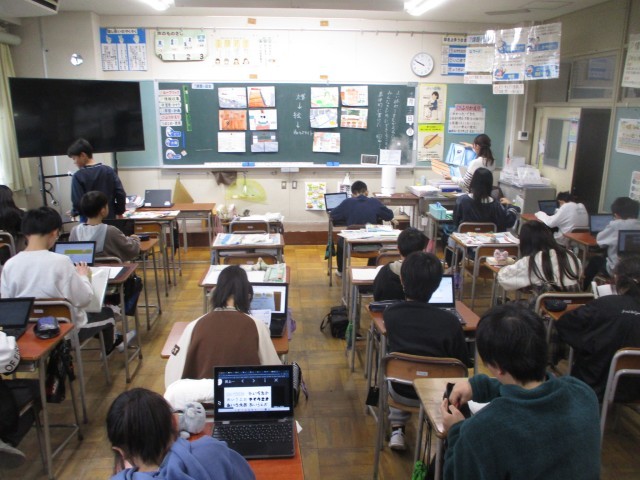 2時間目の学習の様子です。3組はガラス工房に出かけ、卒業記念制作を実施中でした。