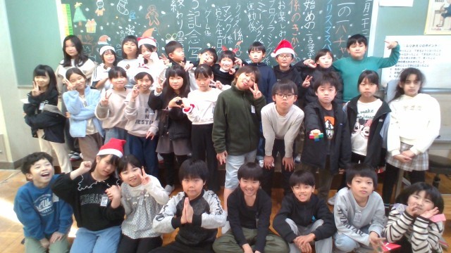今日は各クラスでお楽しみ会を行いました。今日までみんなで計画して準備を進めてきました。仲よく助け合って頑張った2学期をしめくくる、とても楽しい時間を過ごすことができました。