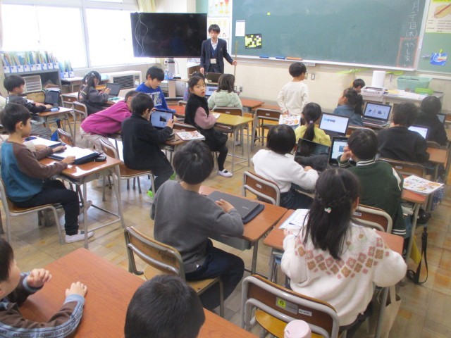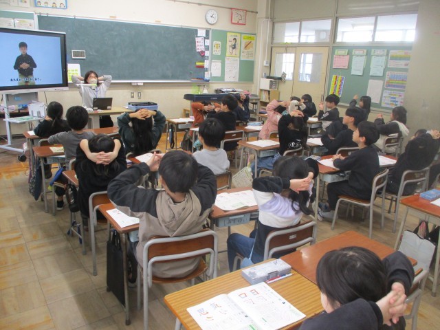 5時間目の学習の様子です。1組は視力測定を受けていました。