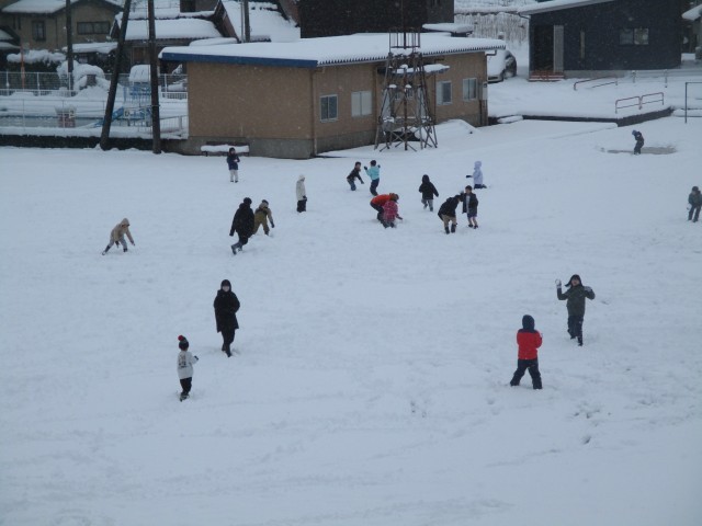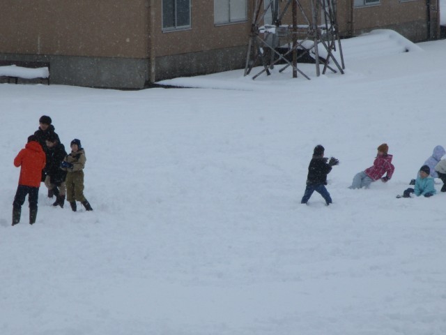 今日のリラックスタイムはグラウンドで雪に親しむ子供たちの姿で一杯になりました。最近は「雪国」としての面影が薄れているような気がしますが、このように雪に親しむ姿を見るのはうれしいものです。