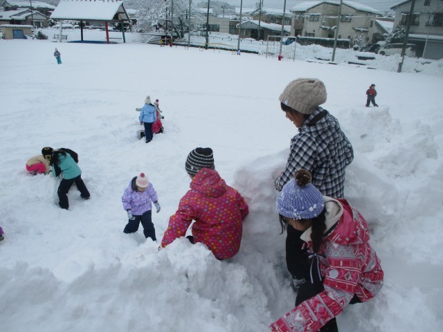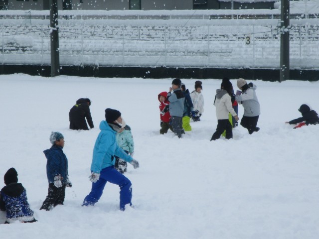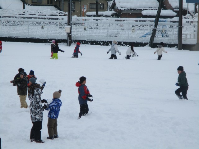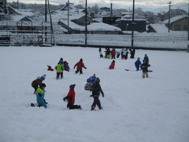 2時間目の学習の様子です。この降雪を生かして学年で雪遊びを実施していました。