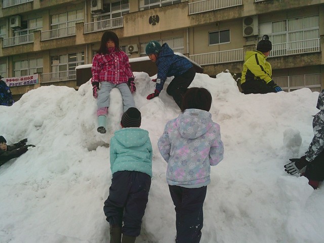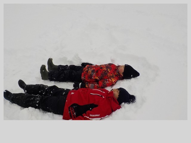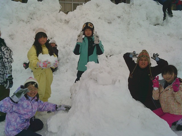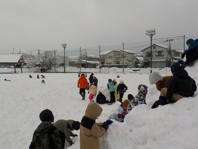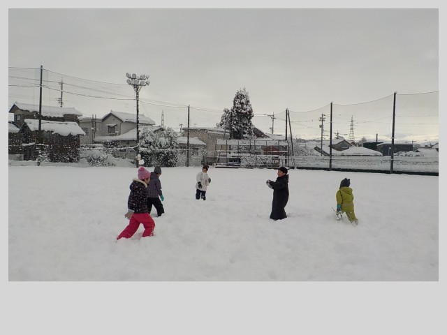 ふかふかのグラウンドの雪の中で、雪だるまやかまくらを作ったり、雪合戦に励んだり、寝転んでみたり・・・思いっきり遊びました。