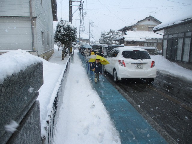 一方で、校舎周辺の通学路は、雪によって道幅も狭くなっており、普段よりもさらに注意喚起が必要な状況となっています。