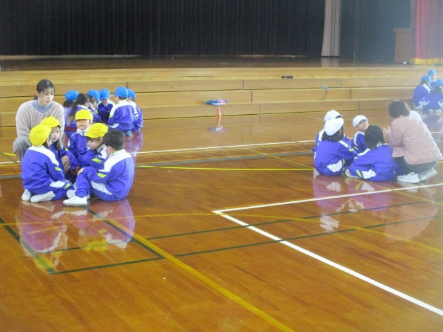 1組と3組で「たまごわりサッカー」をしていました。ちょうど「作戦会議」を行っている場面でした。