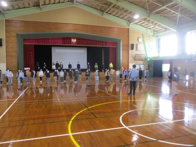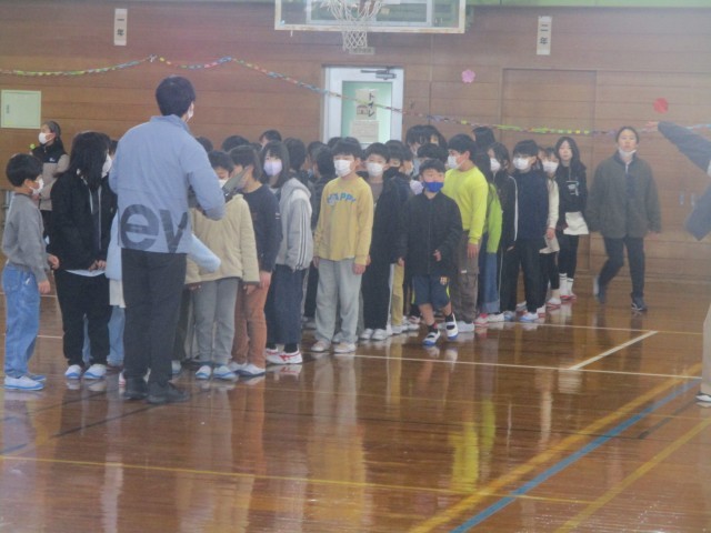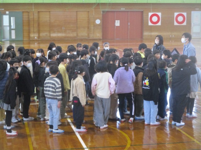 4時間目の学習の様子です。学年で「卒業を祝う会」のスタンツ練習を行っていました。