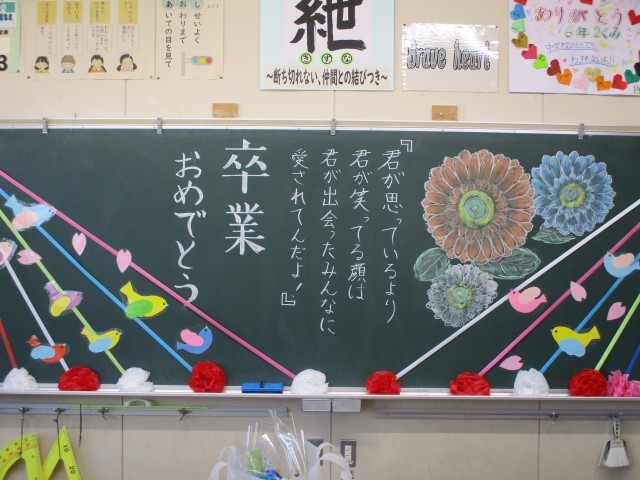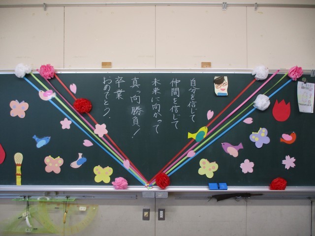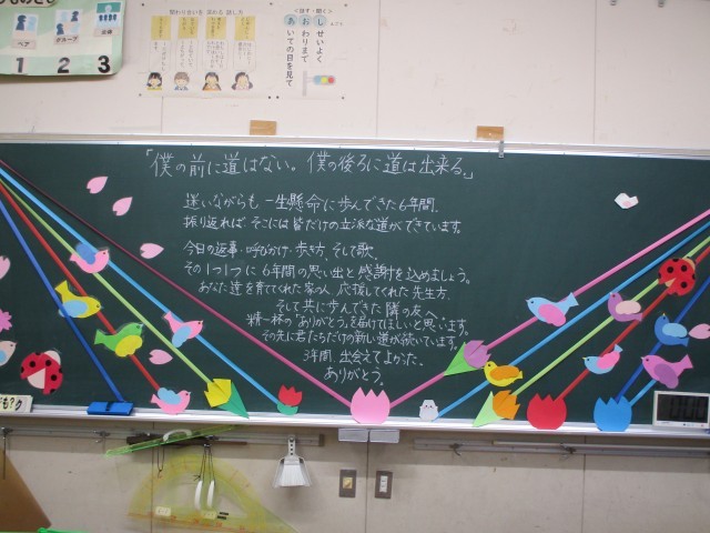 卒業生が巣立った教室の黒板に残されたメッセージです。