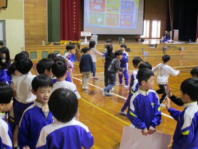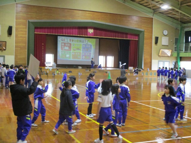 4時間目。楽しく学年集会を行っていました。