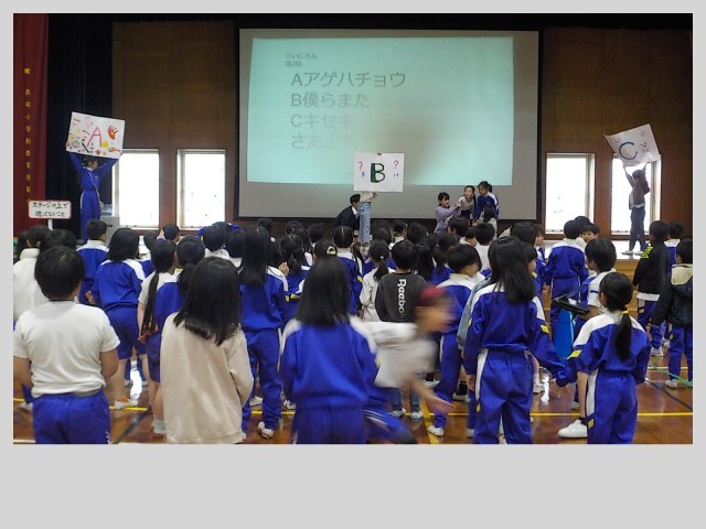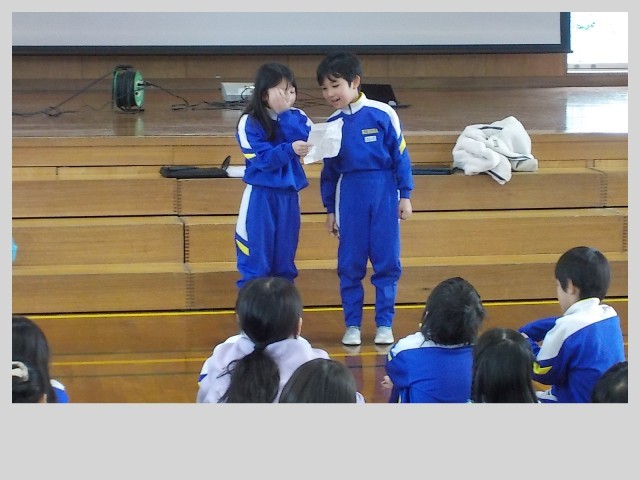 2年生は、学年集会をしました。各クラスで企画をし、準備を進めてきました。1組は「あなたはどっち派?」、2組は「イントロクイズ・ジェスチャーゲーム・なぞなぞ」、3組は「けいどろ」を持ち寄りました。「もっとやりたい」「楽しかった」「新しい友達ができたかも」といった声があちこちから聞こえてきました。来年度にクラス替えを控えていますが、どんなクラスになっても、仲間と楽しく過ごせるような子供たちに育っています。