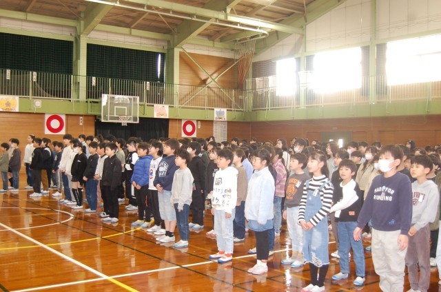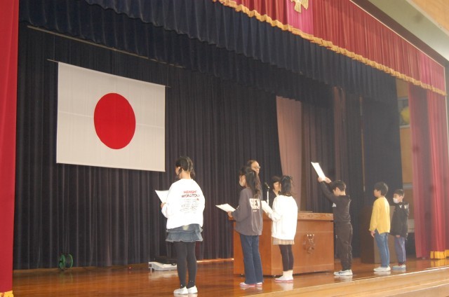 式辞にて校長が、校歌に込められたメッセージを子供たちとともに読み解き、校歌を高らかに歌い上げました。