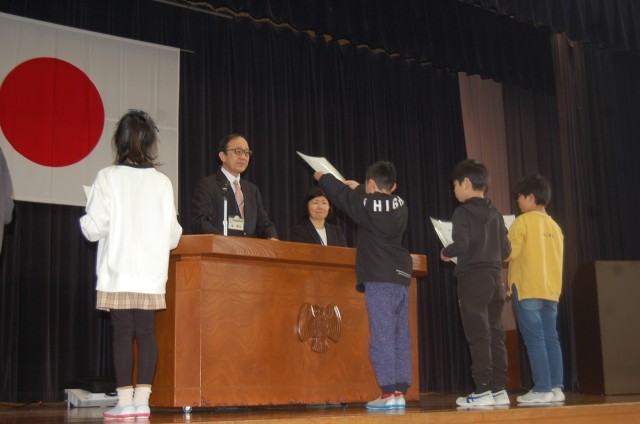 まず各学年の代表に修了証を手渡しました。