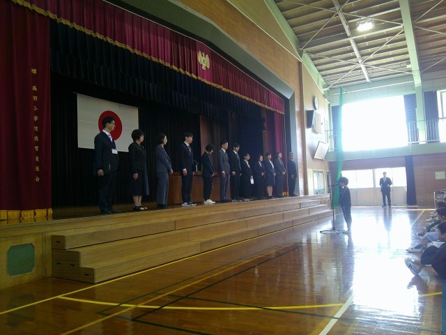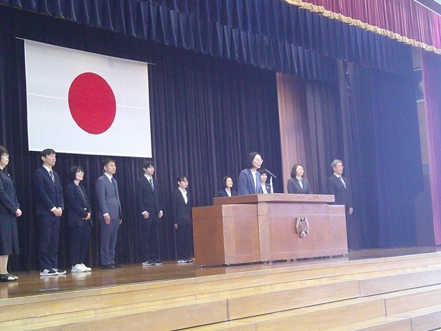 新しく着任した教員と顔を合わせる着任式を行いました。