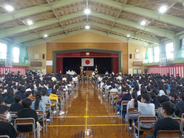 入学式を行いました。 公開日 2026/04/09 更新日 2026/04/09 行事より 本日、令和8年度の入学式を行い、85名の新1年生が入学してきました。明日からも、元気に登校してくるのを楽しみにしています。