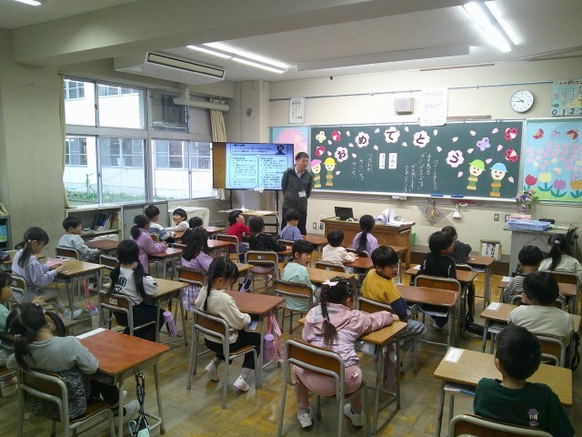 下校コースを確認したり、教室で話を聞いたり、トイレの使い方を学んだりしました。