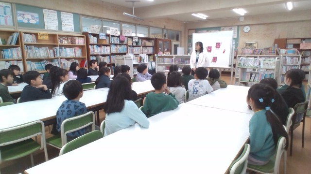 図書室のオリエンテーションをしていただきました。図書室の使い方や本の扱い方などクイズ形式で学習しました。本が大好きな子供たちは、とても真剣に話を聞いていました。3年生になって新しい教科がスタートすることもあり、どんどん興味の幅が広がりそうな子供たちでした。