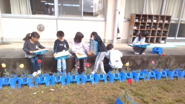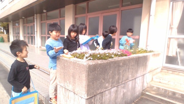 春をたくさん見付けた子供たち。楽しいひとときを過ごしました。