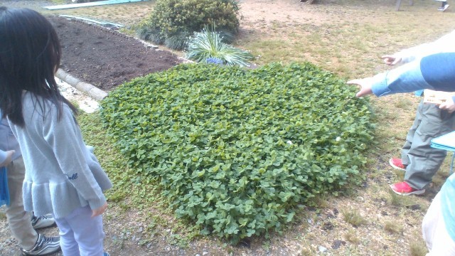 昨年度まで過ごした1年中庭に、ハート形になったクローバー畑に気付いて盛り上がりました。