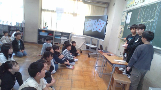 4年生 係活動スタート! 公開日 2026/04/22 更新日 2026/04/21 4年生の活動 進級して2週間。各クラスでは係活動が始まっています。 今日は1組のマジック係がマジックのたねあかしをしてくれました。