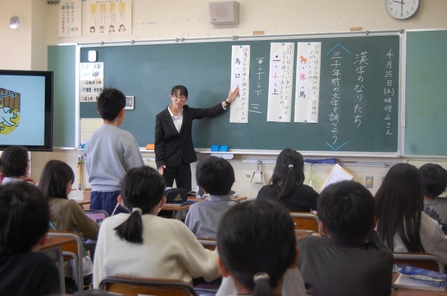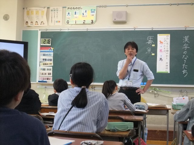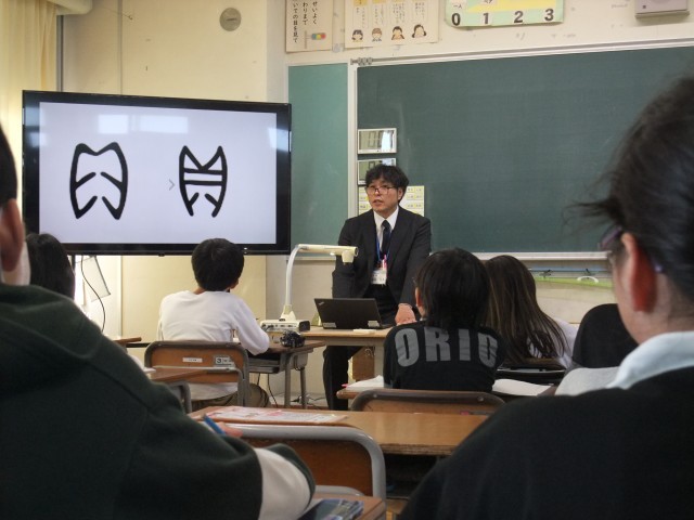 5年生は、国語科「漢字のなりたち」の学習を行いました。クイズに挑戦したり、班で協力して漢字合体パズルをしたりして、3種類の漢字のなりたち方について学びました。