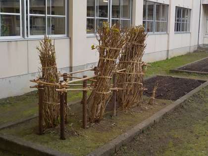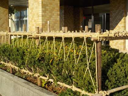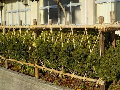 校舎の周りの木々の雪囲いが進んでいます。冬に向けての準備が、始まっています。