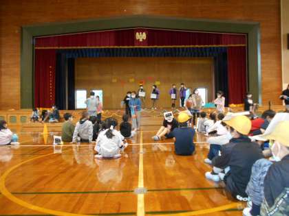6ねんせいが 1ねんせいとなかよくなるために げきやゲームをしてくれました。