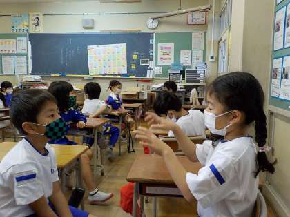 毎日、みんなが楽しみにしている日直のスピーチ。とても楽しそうにスピーチを聞いています。