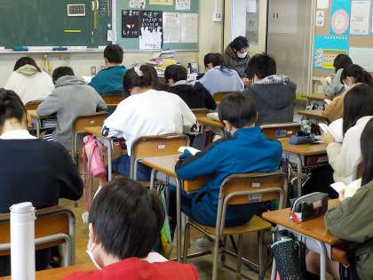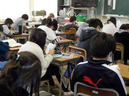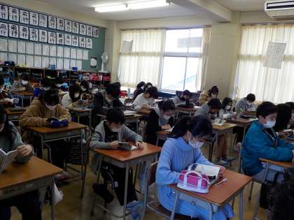 集中して本の世界に浸っています。担任の先生も読書に親しんでいます。