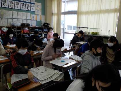 新聞読み方講座で教えていただいた、新聞の「朝パラ」に取り組んでいます。自分のお気に入りのニュースを選び、自分の考えを書き込んでいます。