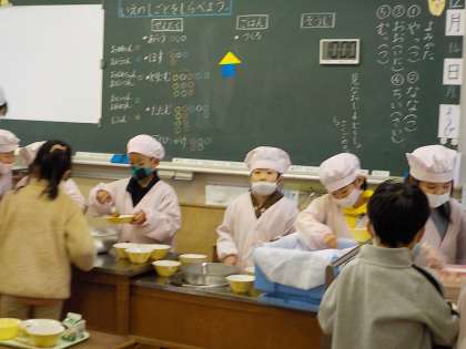 ずいぶん手際よく給食の準備ができるようになった1年生です。