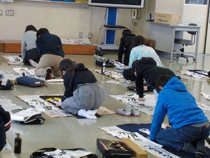 書き初めの練習に取り組み始めました。とめ、はね、はらいに気を付けて、集中して書いています。