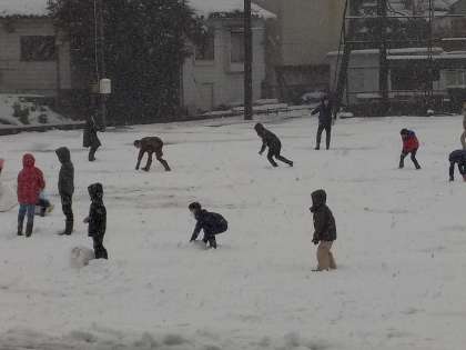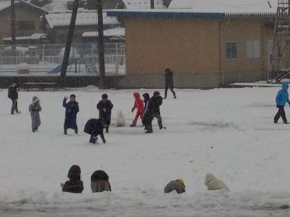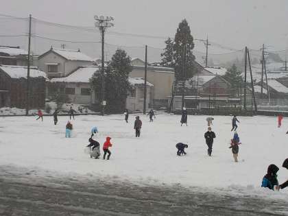 雪が降り積もったグラウンドに、たくさんの呉羽っ子が飛び出してきました。