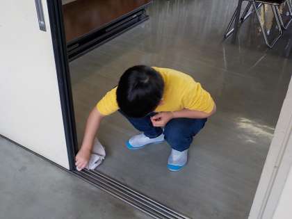 学期末の大掃除に取り組んでいます。すみずみまできれいにするよう、がんばっています。