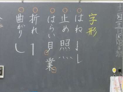 とめ、はね、はらい、字形に気を付けて漢字を書いています。
