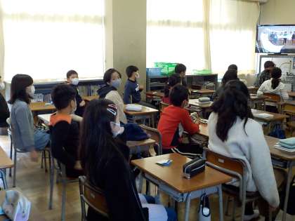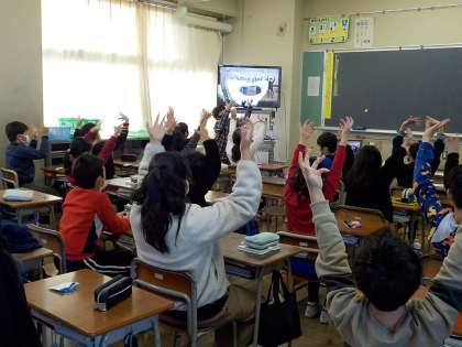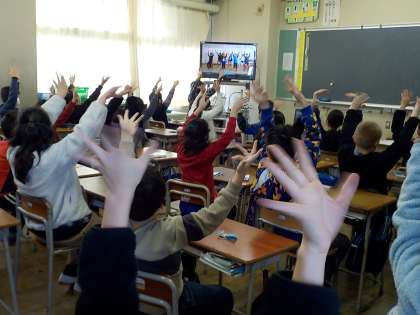 呉羽っ子タイムの最初に、姿勢をよくするからだリメイク体操をしています。