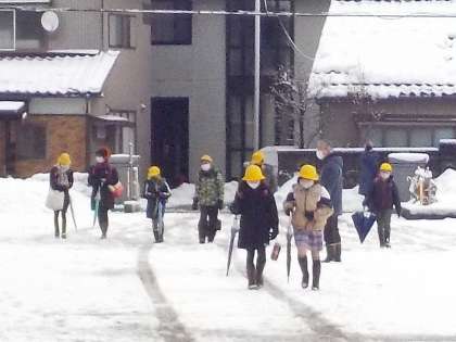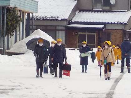 4日間の臨時休業を終え、本日より学校再開となりました。安全に気を付けて呉羽っ子が登校してきました。