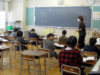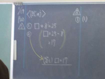 補充問題に取り組んでいます。□を求める式を考えて解きました。
