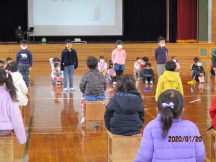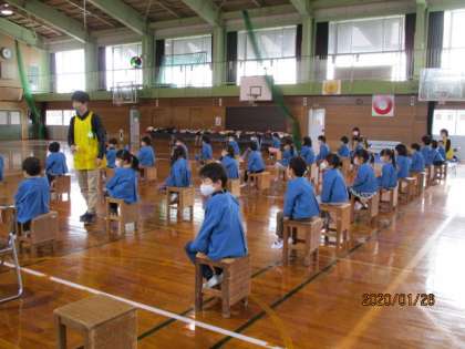 体験授業の後は、体育館に集まってミニ集会を行いました。