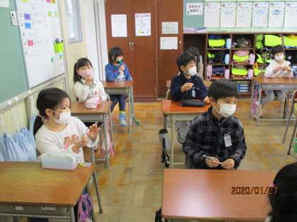 オンラインにて給食集会を行いました。はしの正しい持ち方について学習しました。