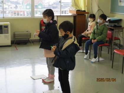 みんなの前で計算カードにチャレンジしました。
