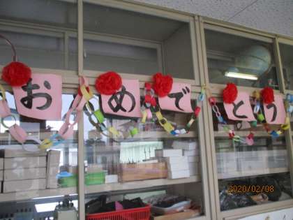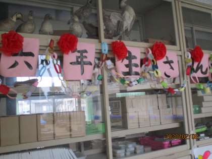 6年生の卒業を祝う月間が、今日からスタートしました。お祝いの気持ちがこもった掲示がされています。