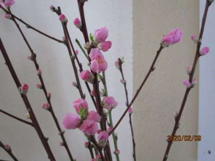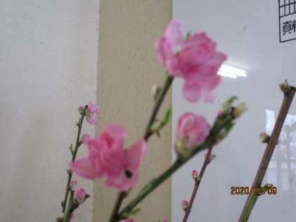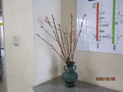 雪のお天気とはなりましたが、正面玄関に飾られている梅の花が咲き始めました。一歩ずつ春に近づいています。