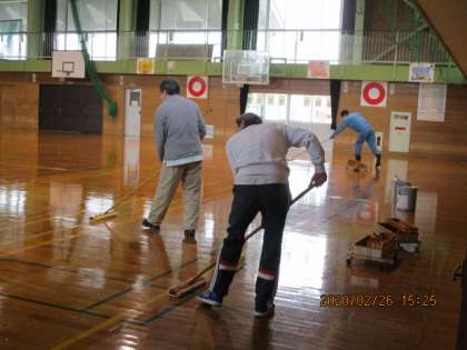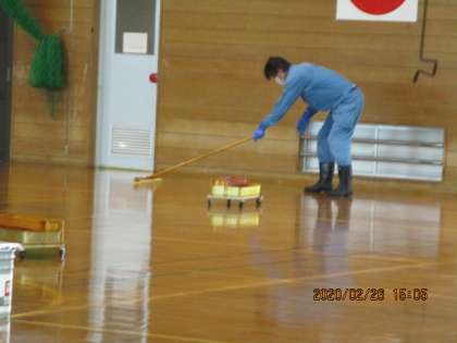 3月19日の卒業式に向けて、体育館のワックスがけを行いました。