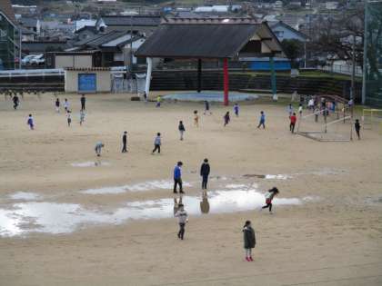陽気に誘われて、たくさんの呉羽っ子がグラウンドに出てきました。