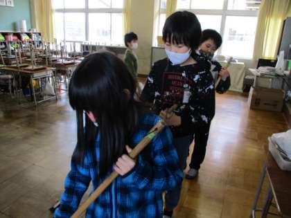 3年生のクリーンアップタイム(清掃時間)の様子です。チームワークよく、黙働で進めています。