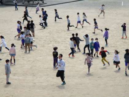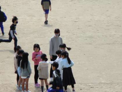 学校のグラウンドに元気な子供たちの声が戻ってきました。グラウンドに目をやると・・・。子供たちと一緒に遊ぶ先生たちの姿がありました。