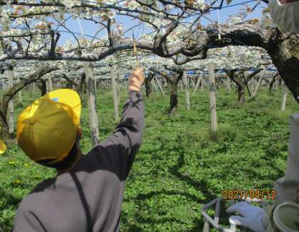 今日は、梨の人工交配の作業を体験してきました。体験後には梨農家の方に、梨について知りたいことをたくさん質問しました。