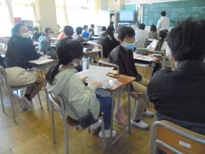 算数科では、さまざまな多角形の線対称と点対称について、自分の考えをまとめたり、互いの考えを伝え合ったりしました。